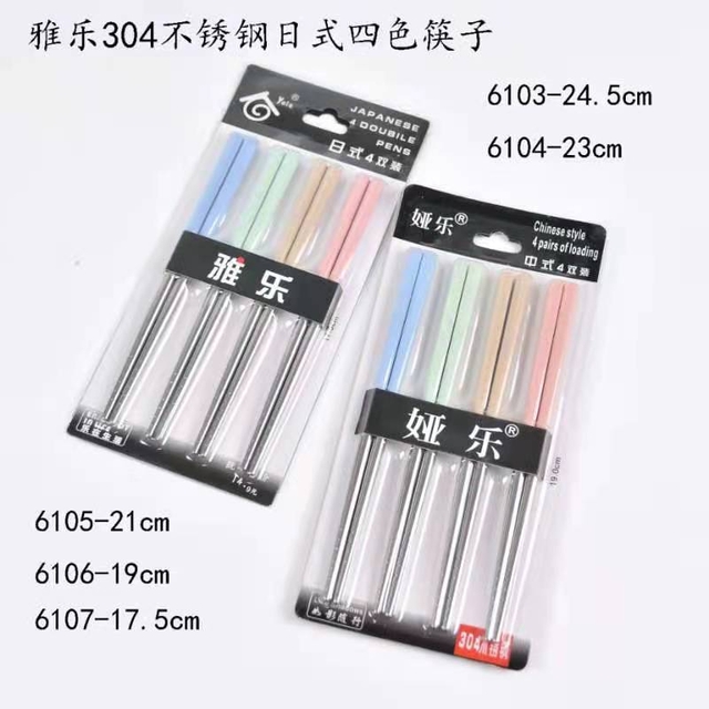 雅乐 304不锈钢日式四色筷子 6105