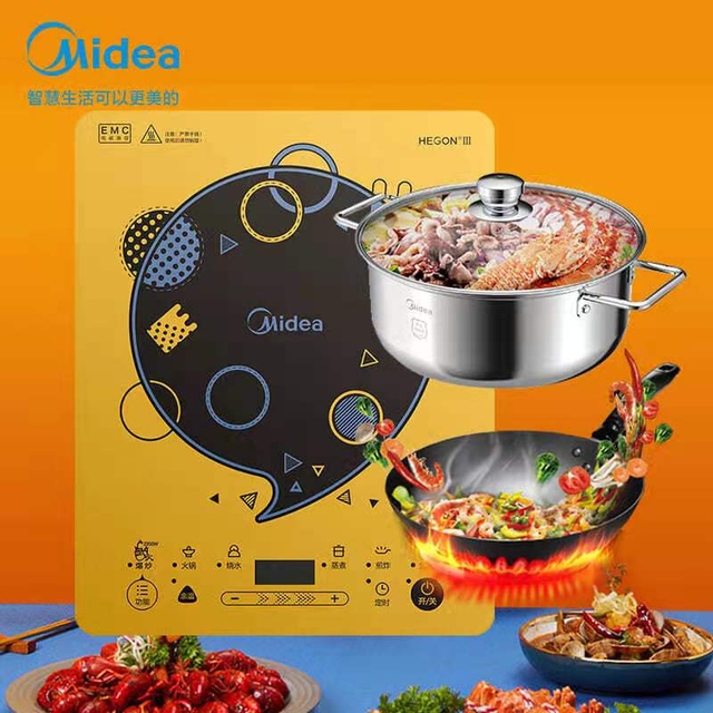 美的(Midea)电磁炉 滑控火力调节 2200W大火力电磁灶 C22-WT22T0301(赠汤锅+炒锅)