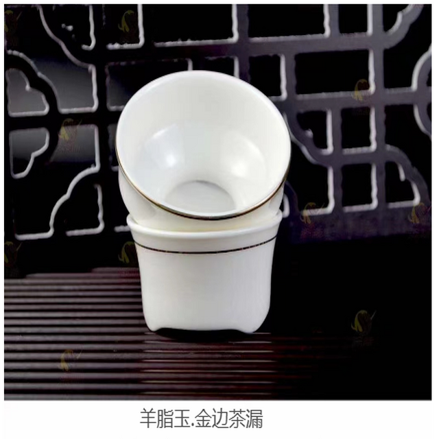 羊脂玉金边陶瓷茶漏