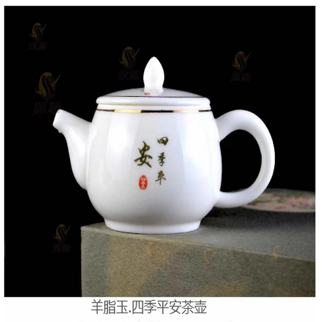 羊脂玉陶瓷四季平安茶壶