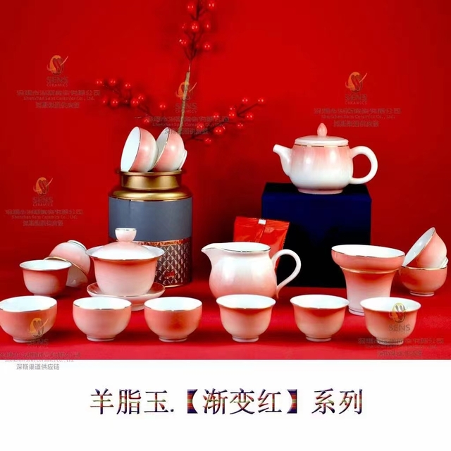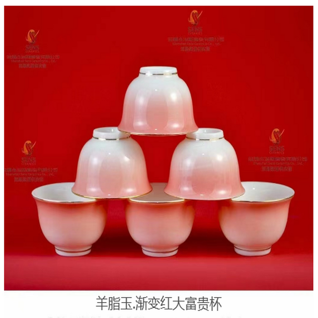 羊脂玉陶瓷渐变红大富贵杯