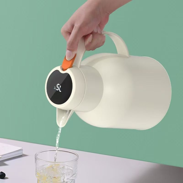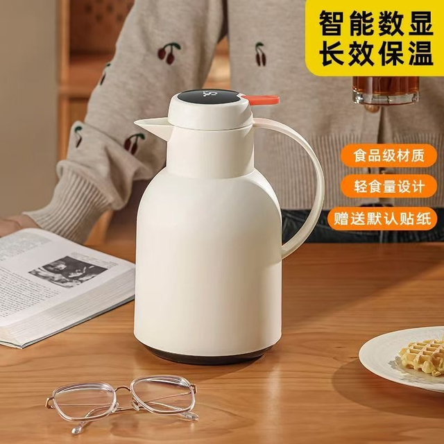 乐唯诗(NERVISHI)保温壶温显家用保温壶大容量玻璃智能温度显示开热水暖水瓶小暖壶 米白色1L