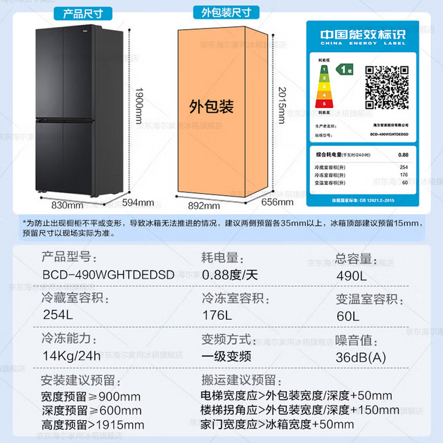 | 认证型号 | BCD-490WGHTDEDSD | |