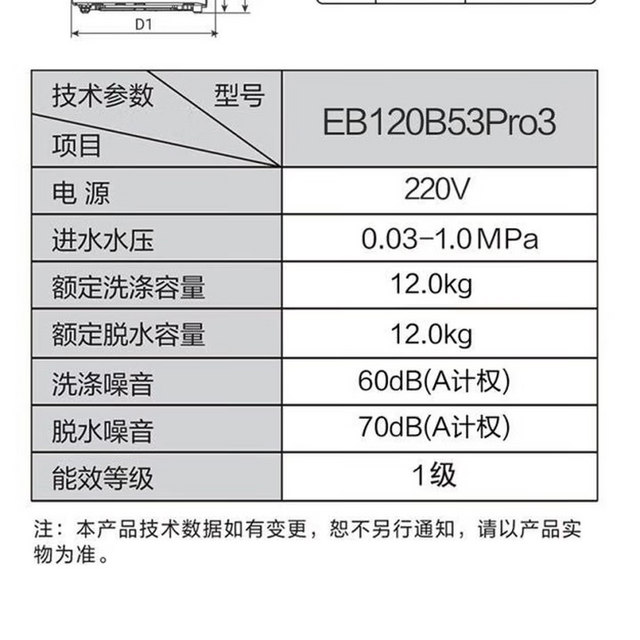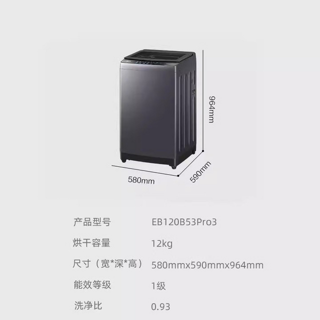 已选:海尔 洗衣机 12kg EB120B53PRO3