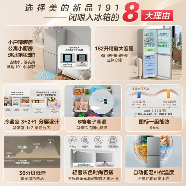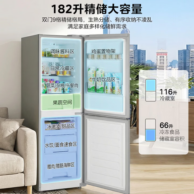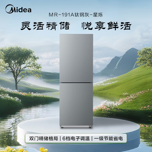182L两门冰箱灰色两门小户型一级能效客厅家用电冰箱租房低音节能冷藏冷冻MR-191A钛钢灰-星烁