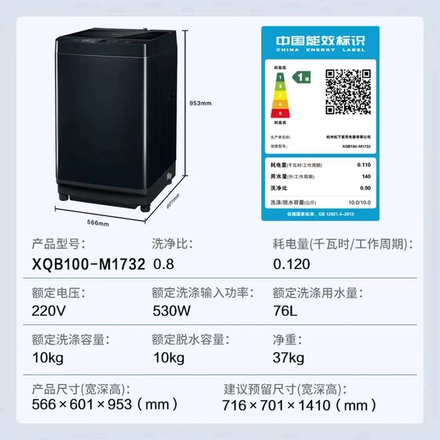 已选:松下10公斤1级能效全自动 洗衣机 XQB100-M1732
