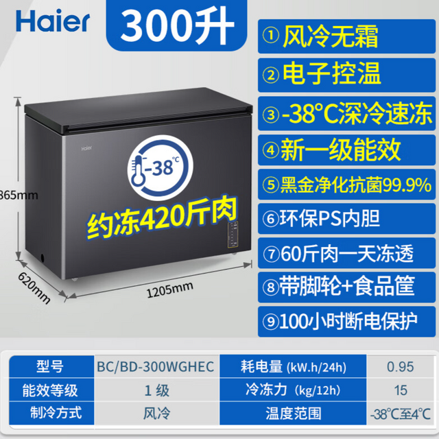 已选:海尔300升大冷冻柜 BC/BD-300WGHEC(风冷)