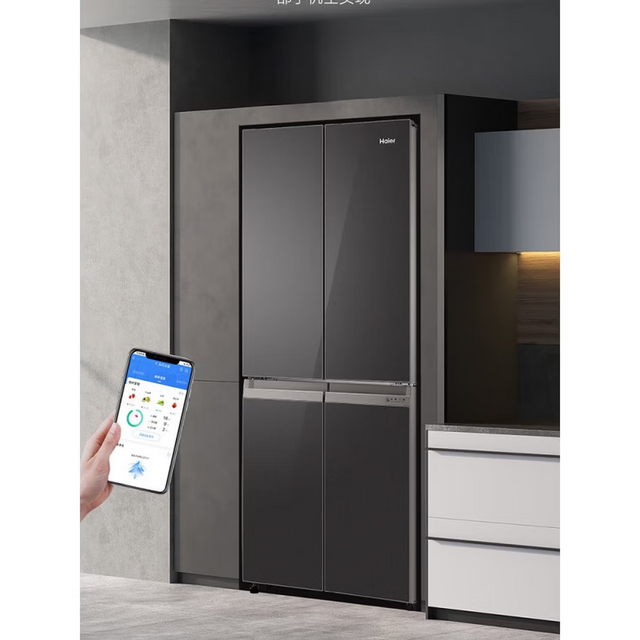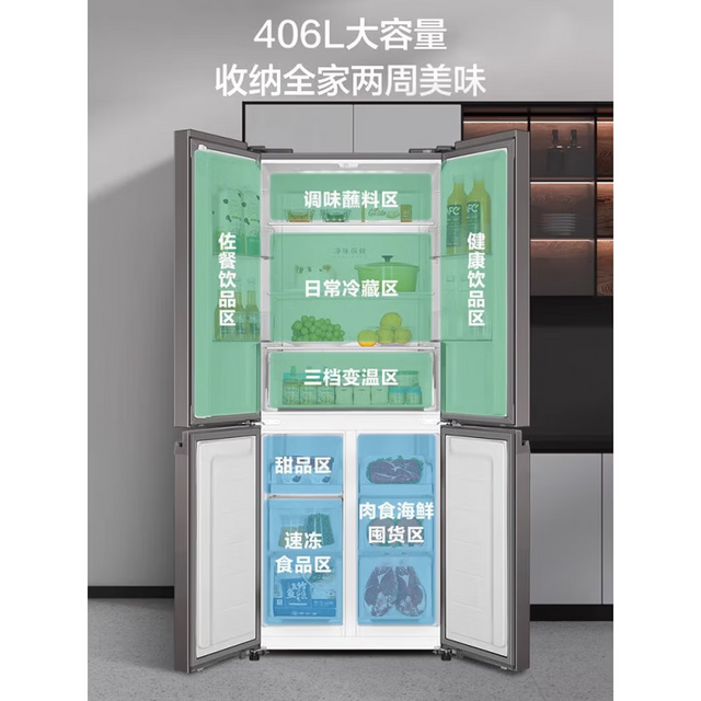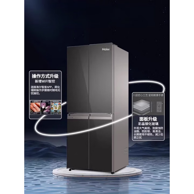 海尔Haier 十字对开多门四开门406升一级变频风冷无霜 玻璃面板BCD-406WLHTDEDSLU1
