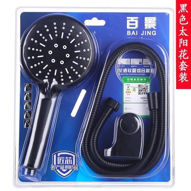 百景浴室黑色太阳花软管增压花洒套装BJ222